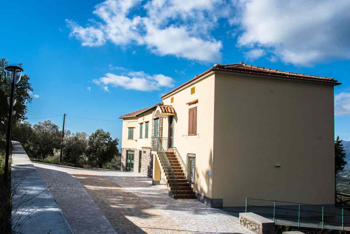 La struttura, situata a 600 metri dall’ingresso nel paese di Postiglione, è immersa nel verde, tra oliveti e pinete, e si distende su circa 12 ettari di terreno. Un angolo di verde che, per la sua posizione sopraelevata, gode di un panorama mozzafiato, con vista su tutta la valle e sul Golfo.